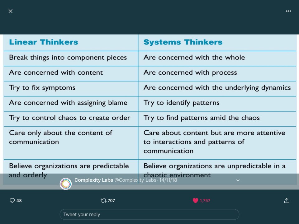 Linear and systems thinkers Leave a reply Share this: Click to share on X (Opens in new window) X Click to share on Facebook (Opens in new window) Facebook Like Loading... Related